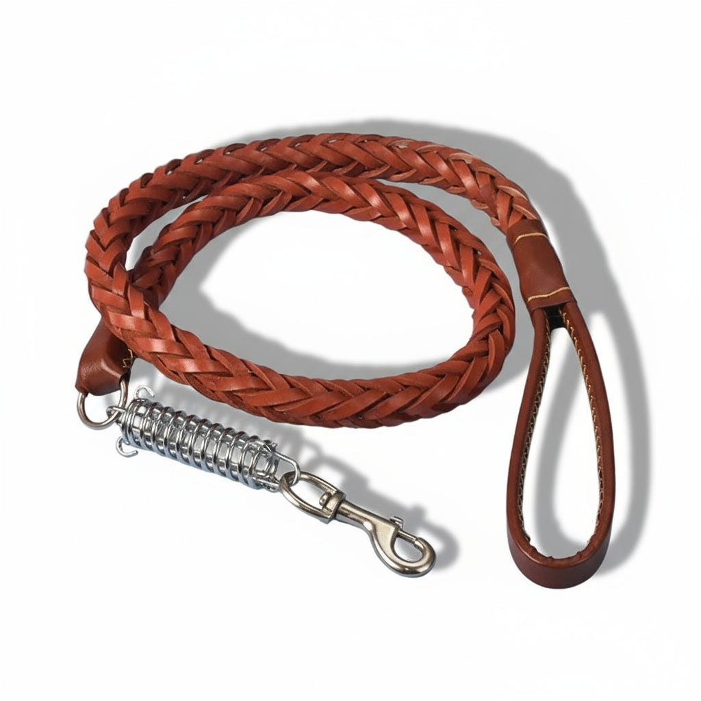 Tillverkat i flätat premiumläder som ligger bekvämt i handen och tål daglig användning – oavsett om det gäller promenader, träning eller starka hundar.