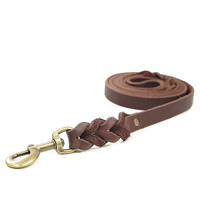 Ge din hund ett stilrent och slitstarkt koppel som håller länge! Detta äkta läder koppel är handgjort av högkvalitativt läder från ko och designat med en vacker flätning som ger både styrka och en exklusiv känsla. Flätningen fördelar dragkraften jämnt och minskar risken för sprickor, vilket gör kopplet mer slitstarkt och hållbart över tid. Dessutom blir lädret mer flexibelt och bekvämt att använda, samtidigt som det ger en stilren och exklusiv design. Perfekt för dagliga promenader – oavsett om du har en liten, medelstor eller stor hund.
